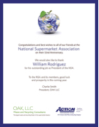 9 ;. .. ‘C. " ' ""' .453‘ " l _' _ 6&5/‘ Congratulations and best wishes to all of our friends at the National Supermarket Association on their 32nd Anniversary. We would also like to thank William Rodriguez for his outstandingjob as President of the NSA. To the NSA and its members, good luck and prosperity in the coming year. Charlie Smith President, OAK LLC OAK, LLC ,1cr:.::,u ,:::::::::;.. Waste and Recycling Consultants 5,..,,,.,.,,,.,.... G,..,,, R”''‘'''‘' The largest waste and recycling broker In the supermarket induslry NY’: I'M-‘tr -WM W-M4 K”?-‘It'll: ComP¢"'.V