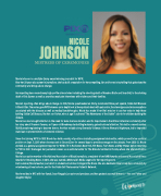 NICOLE JOHNSON MISTRESS OF CEREMONIES Nicole Johnson is a multiple Emmy award-winning journalist for WPIX. Over her 20-year-plus career in journalism, she has built a reputation for her compelling, fair and honest storytelling that galvanizes the community and brings about change. Her reporting has covered many high-profile crime stories including the shooting death of Amadou Diallo and Sean Bell, to the choking death of Eric Garner as well as countless exclusive interviews with victims and their families. Nicole’s reporting often brings about change. In 2016, Nicole spearheaded an Emmy-nominated three-part special, Sickle Cell Disease: A Silent Killer. The series gave WPIX viewers an in-depth look at how patients deal with pain crisis, the stereotypes and misconceptions associated with the disease as well as medical breakthroughs. Nicole has made it her life’s mission to use her voice to help those battling Sickle Cell Disease, like her son Parker, who at age 11 authored “The Adventures of the Sickler” a book for children battling the disease. Nicole has also brought attention to the need for bone marrow donation and its importance in the African American community after her story about Shannon Tavares, an 11 year-old Broadway star battling leukemia, gained national attention. This led to a record number 10,000 people registering to become donors. Another notable story, Domestic Violence: A Bronx Woman’s Nightmare, led to improved state laws to protect victims of domestic violence. Since first joining WPIX in 1997, Nicole has held a variety of positions including assignment desk editor, which proved to be a critical position on Sept. 11, 2001 when she was sent to Ground Zero for several days to provide coverage on the attacks. From 2002-12, Nicole worked as a general assignment reporter for WROC-TV in Rochester, New York, NY1 News, Fox 5 News and My 9 News before returning to PIX11 in 2012. She began her journalism career as an editorial writer for The Orlando Sentinel in Florida, where she attended Rollins College. Nicole is an active member of the National Association of Black Journalists, a recipient of two NABJ Awards and several Associated Press Awards for Breaking News. In 2012, she was named a McDonald’s Media Legend for her reporting work. Each summer, Nicole teaches journalism to students at Lehman College in the Bronx. She also dedicates time to help her community by volunteering at local schools, and for the Sickle Cell Thalassemia Patient’s Network. Nicole resides in NYC with her fiancé, Sean Ringgold, an actor and producer, and her greatest accomplishments — her son Parker and daughter Skylar.